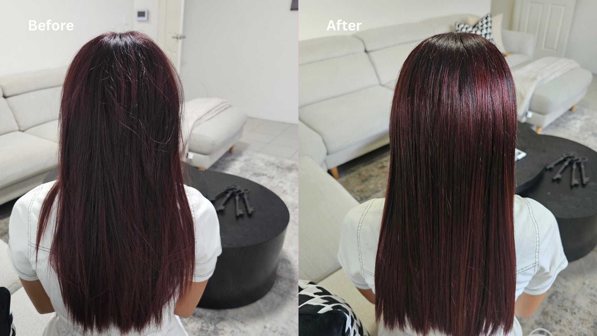 The serum absorbs instantly, leaving hair smooth, silky, and illuminated, never greasy or heavy.